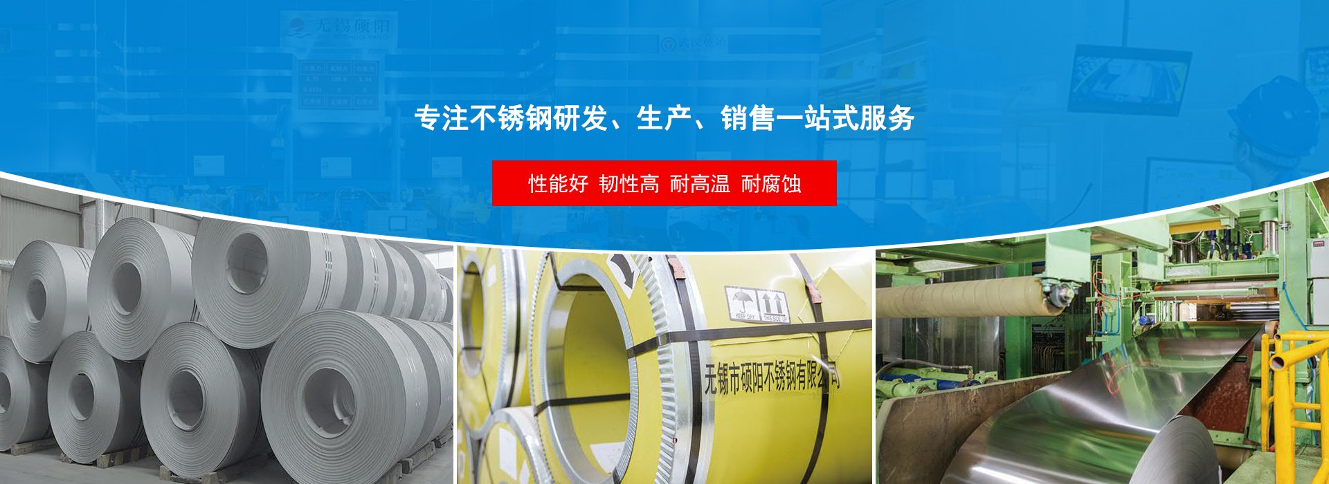 專(zhuān)注不銹鋼研發(fā)生產(chǎn)銷(xiāo)售一站式服務(wù)無(wú)錫市碩陽(yáng)不銹鋼有限公司是由無(wú)錫市宏展不銹鋼有限公司和香港嘉勝五金公司共同投資創(chuàng)建,公司成立于2004年。注冊(cè)資金3億元,占地200畝,擁有員工450人,高級(jí)技工100人。公司主要設(shè)備有:酸洗退火線(xiàn)1條、罩式退火爐20臺(tái)、修磨機(jī)機(jī)組線(xiàn)1條、二十輥可逆軋機(jī)2臺(tái)、平整機(jī)2臺(tái)、立式退火爐2臺(tái)、縱剪機(jī)3臺(tái)、重卷機(jī)1臺(tái)、圓片機(jī)沖剪1臺(tái)。主要生產(chǎn)產(chǎn)品不銹鋼:304、201、430、410s...